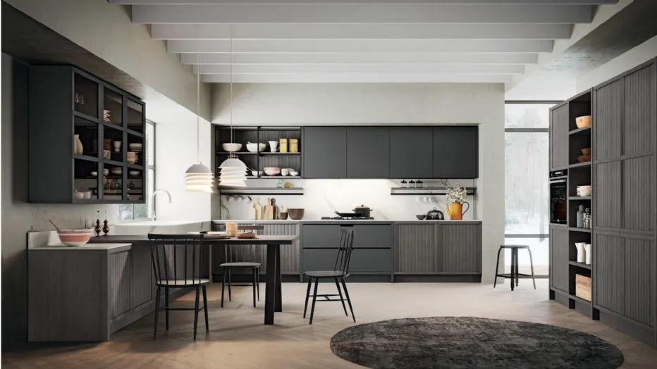 - L'estetica e la versatilità compositiva delle cucine si prestano ad arredare locali separati ma anche ambienti openspace con cucine living, tanto diffuse nelle nostre case oggi.